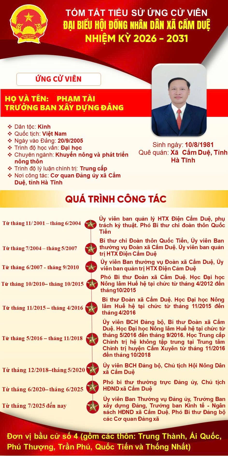 | 12/QĐ-UBND | 09/01/2026 | Xác định khu vực bỏ phiếu bầu cử đại biểu Quốc hội và Hội đồng nhân dân các cấp, nhiệm kỳ 2026-2031 xã Cẩm Duệ | tai-ve |