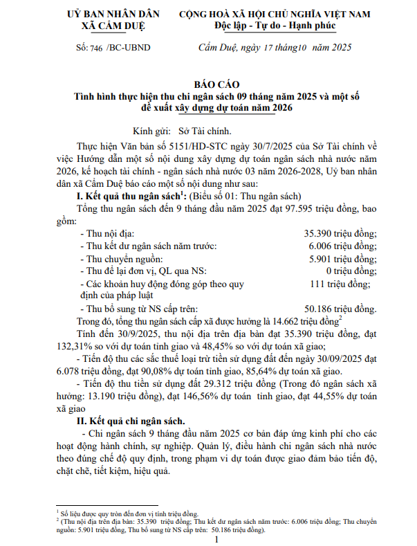 Báo cáo kết quả thu chi 9 ngân sách 9 tháng đầu năm và xây dựng dự toán năm 2026Ẩn danh17/10/2025A -A+Ẩn danh17/10/2025A -A+