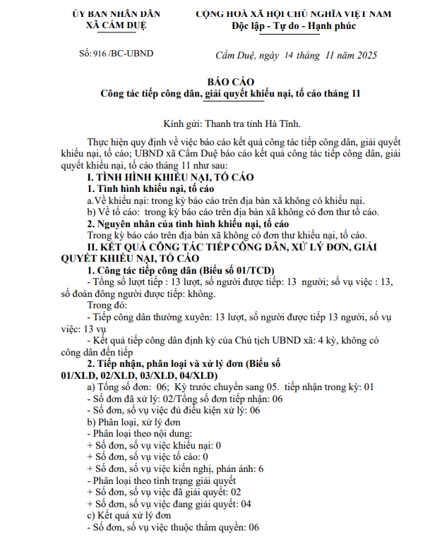 Công tác tiếp công dân, giải quyết khiếu nại, tố cáo tháng 11Ẩn danh16/11/2025A -A+Ẩn danh16/11/2025A -A+ File đính kèmBao-cao-TCD-KNTC-thang-11-nam-2025(16.11.2025_18h57p29)_signed.pdf