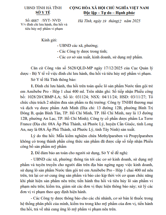 Đình chỉ lưu hành, thu hồi và tiêu hủy mỹ phẩm vi phạm - AmibebeẨn danh19/12/2025A -A+Ẩn danh19/12/2025A -A+