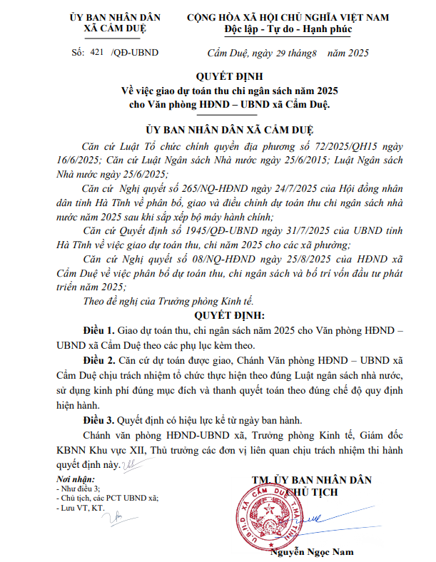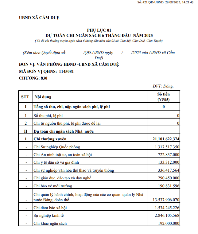 Quyết định giao dự toán Ngân sách năm 2025 cho VPHĐND -UBNDẨn danh29/08/2025A -A+Ẩn danh29/08/2025A -A+ File đính kèm01.-VP-UBND-KEM-QD-GIAO-DU-TOAN(29.08.2025_14h22p09)_signed (1).pdf1.-moiQD-GIAO-DU-TOAN-VP-UBND-XAmoi(29.08.2025_14h20p57)_signed (1).pdf