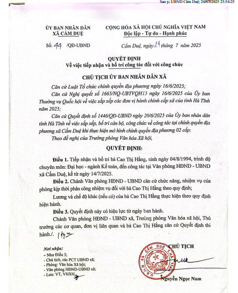 Quyết định tiếp nhận và bố trí công tác đối với bà Cao Thị HằngẨn danh01/07/2025A -A+Ẩn danh01/07/2025A -A+File đính kèmcao thị hằng.pdf
