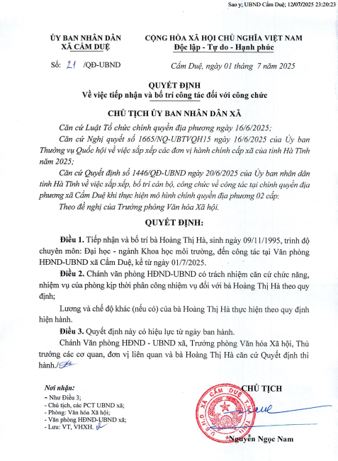 Quyết định tiếp nhận và bố trí công tác đối với bà Hoàng Thị HàẨn danh01/07/2025A -A+Ẩn danh01/07/2025A -A+File đính kèmhoàng thị hà.pdf