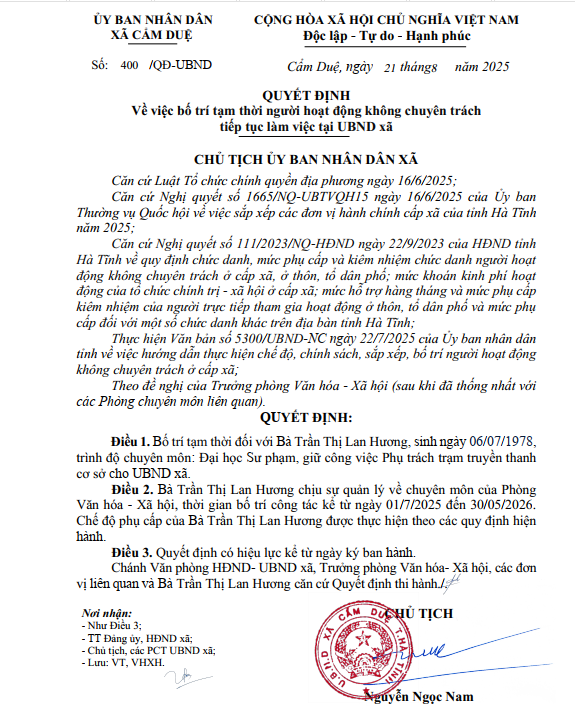 Quyết định tiếp nhận và bố trí công tác đối với bà Trần Thị Lan HươngẨn danh01/07/2025A -A+Ẩn danh01/07/2025A -A+File đính kèmtrần thị lan hương.pdf
