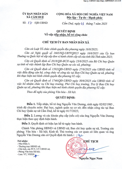 Quyết định tiếp nhận và bố trí công tác đối với ông Nguyễn Văn DươngẨn danh01/07/2025A -A+Ẩn danh01/07/2025A -A+File đính kèmnguyễn văn dương.pdf
