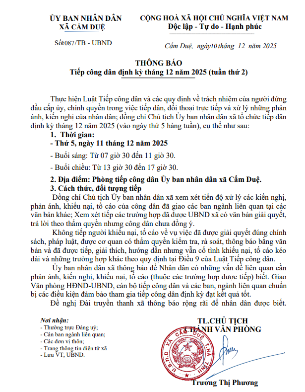 Thông báo tiếp công dân định kỳ tháng 12 năm 2025 (tuần thứ 2)Ẩn danh10/12/2025A -A+Ẩn danh10/12/2025A -A+
