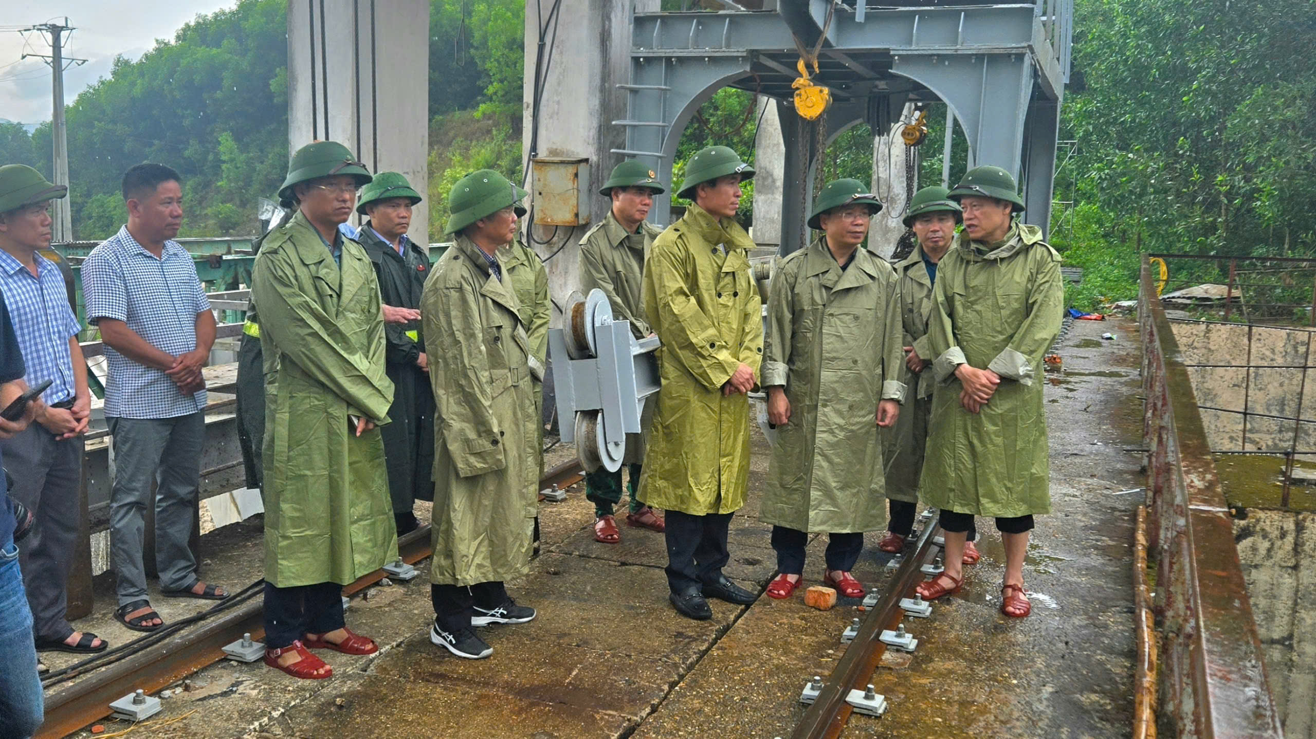 Đồng chí Nguyễn Duy Lâm - Bí thư Tỉnh ủy – Trưởng đoàn kiểm tra công tác chủ động ứng phó cơn bão số 5 tại địa bàn xã Cẩm Duệ cùng đoàn công tác kiểm tra pương án ứng phó bão số 5 tại hồ Kẻ Gỗ
